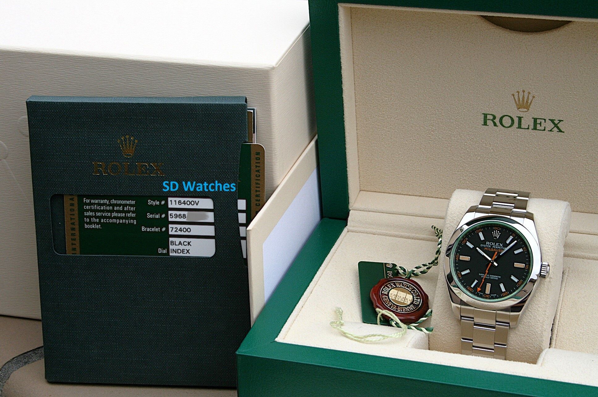 I have for sale a Rolex Milgauss watch model 116400GV in near mint 96% condition.