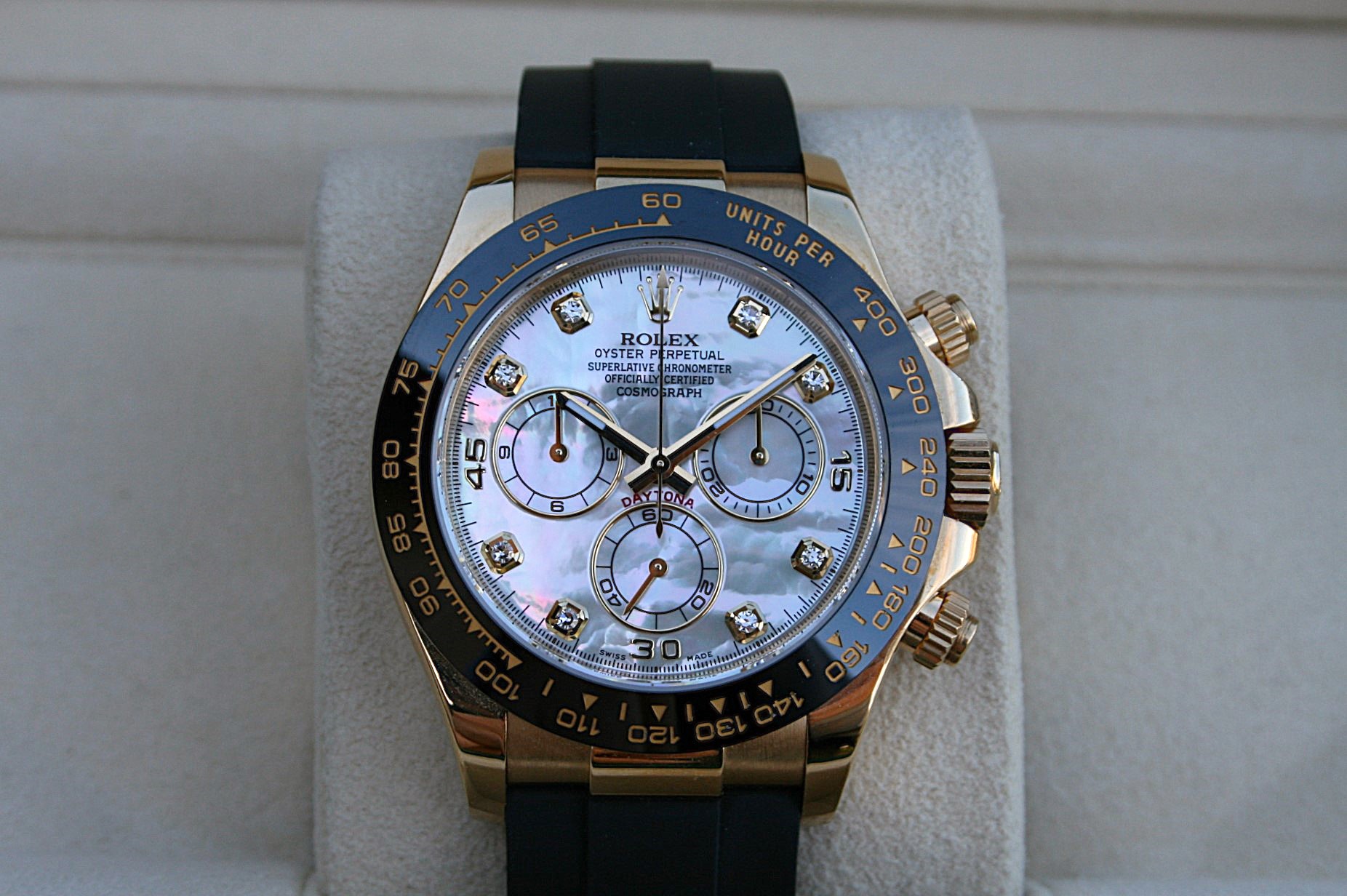 Rolex 116518 Daytona 18K YG Oysterflex Watch MOP Diamond