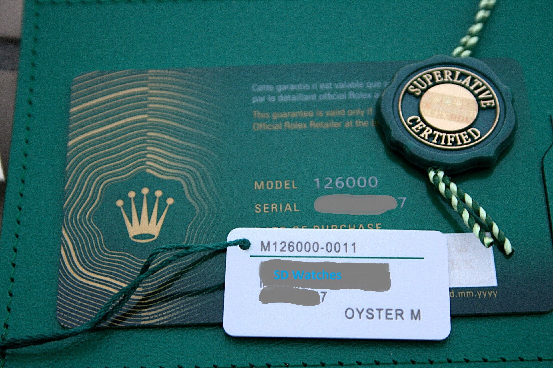I have for sale a Rolex Oyster Perpetual Watch model 126000 that comes in 96% near mint condition.