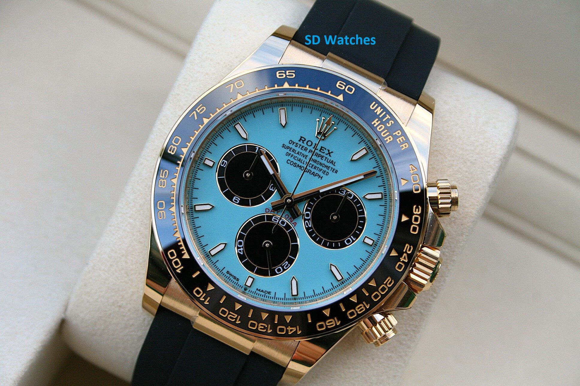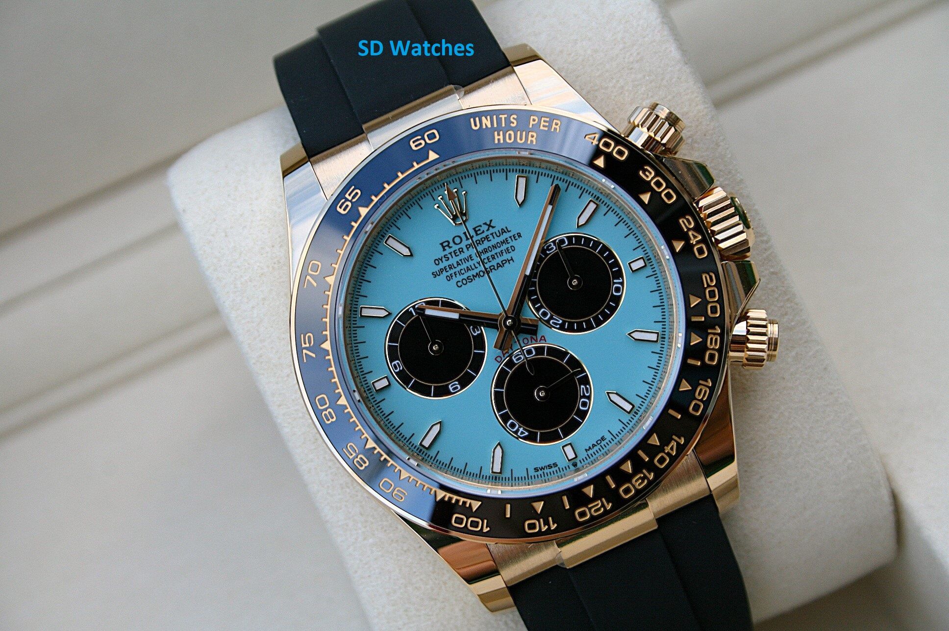 This watch comes in 18K yellow Gold with Blue Turquoise Tiffany Dial, 40MM case on Oysterflex band with the new 4131 movement.