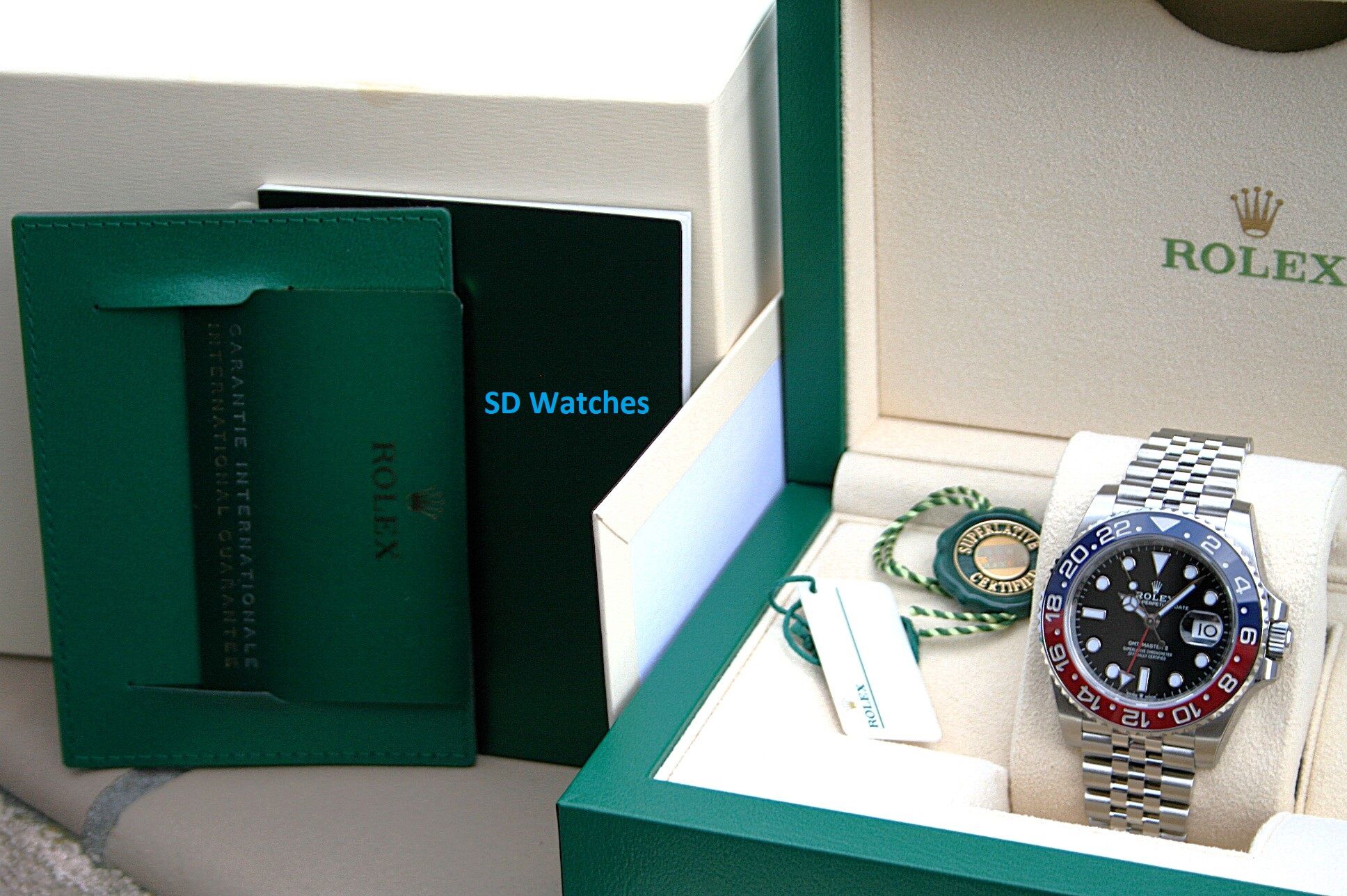 I am selling a NIB Rolex GMT Master II watch model 126710BLRO.