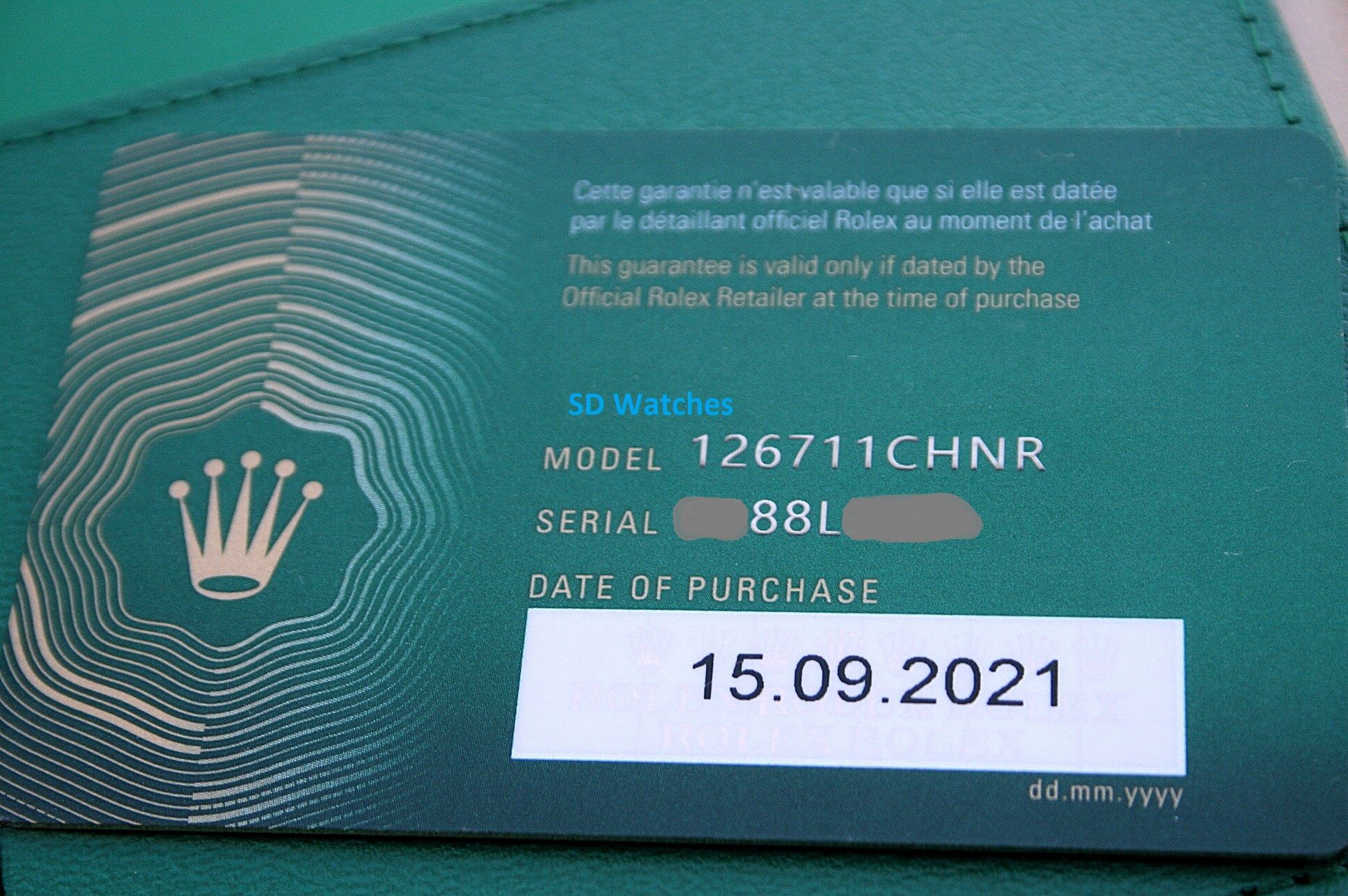 I have for sale a Rolex GMT Master II watch model 126711CHNR that comes in near mint 96% condition.