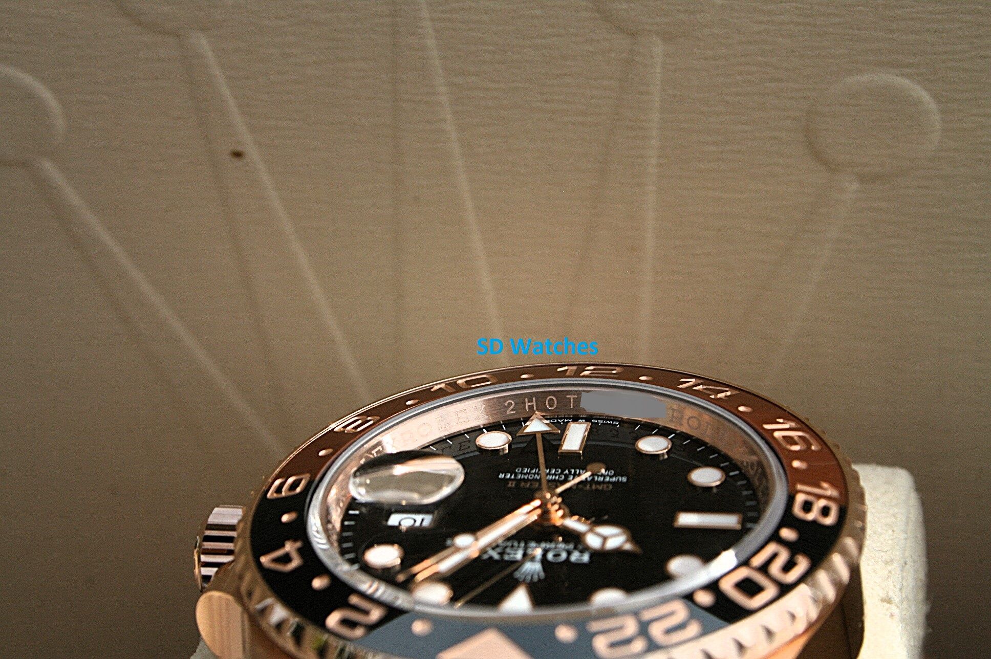 This watch comes in 18K Rose gold, 40MM case with Oyster Band and Rootbeer bezel.
