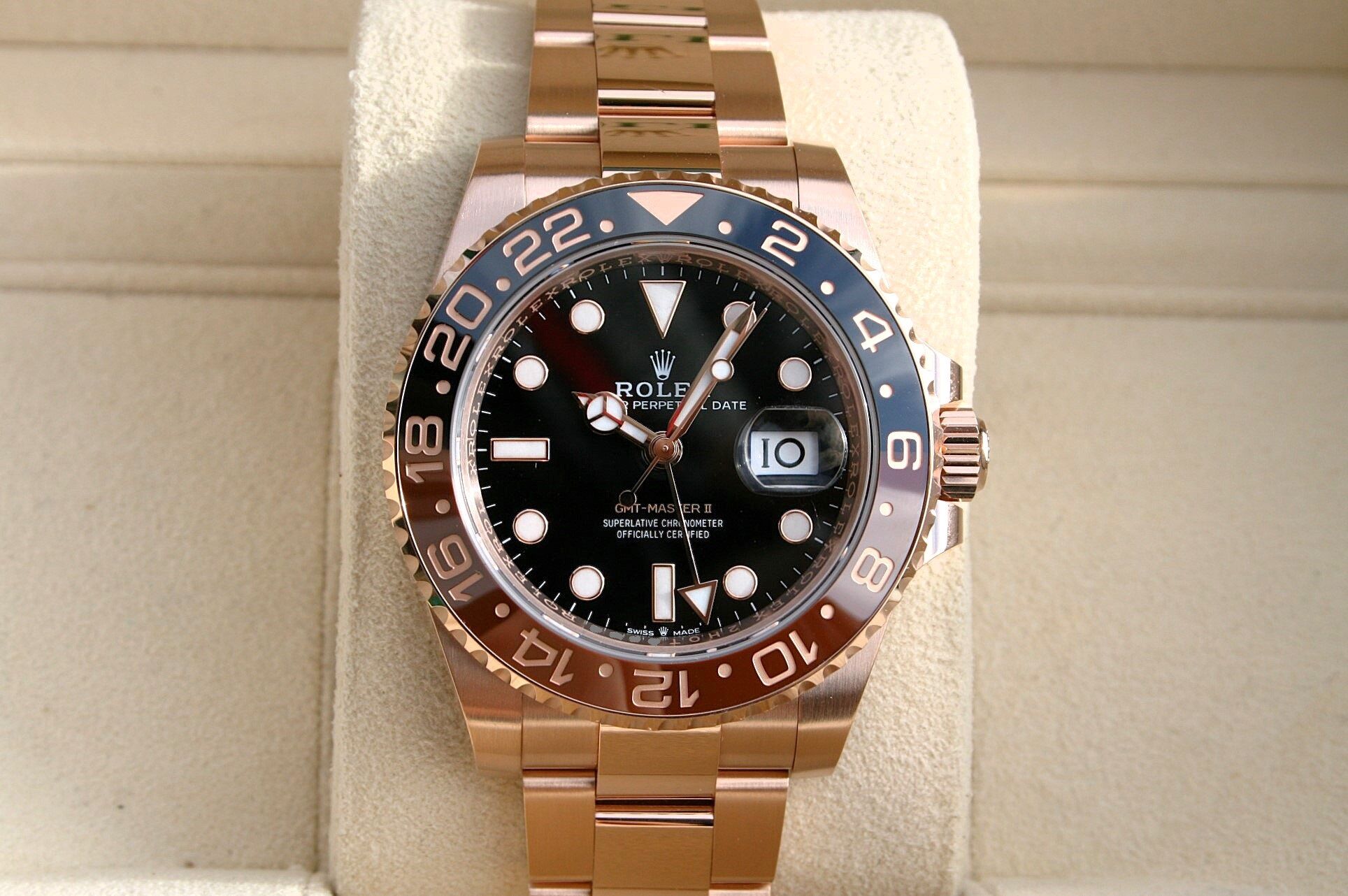 Rolex 126715CHNR GMT Master II 18K Rose Gold Rootbeer