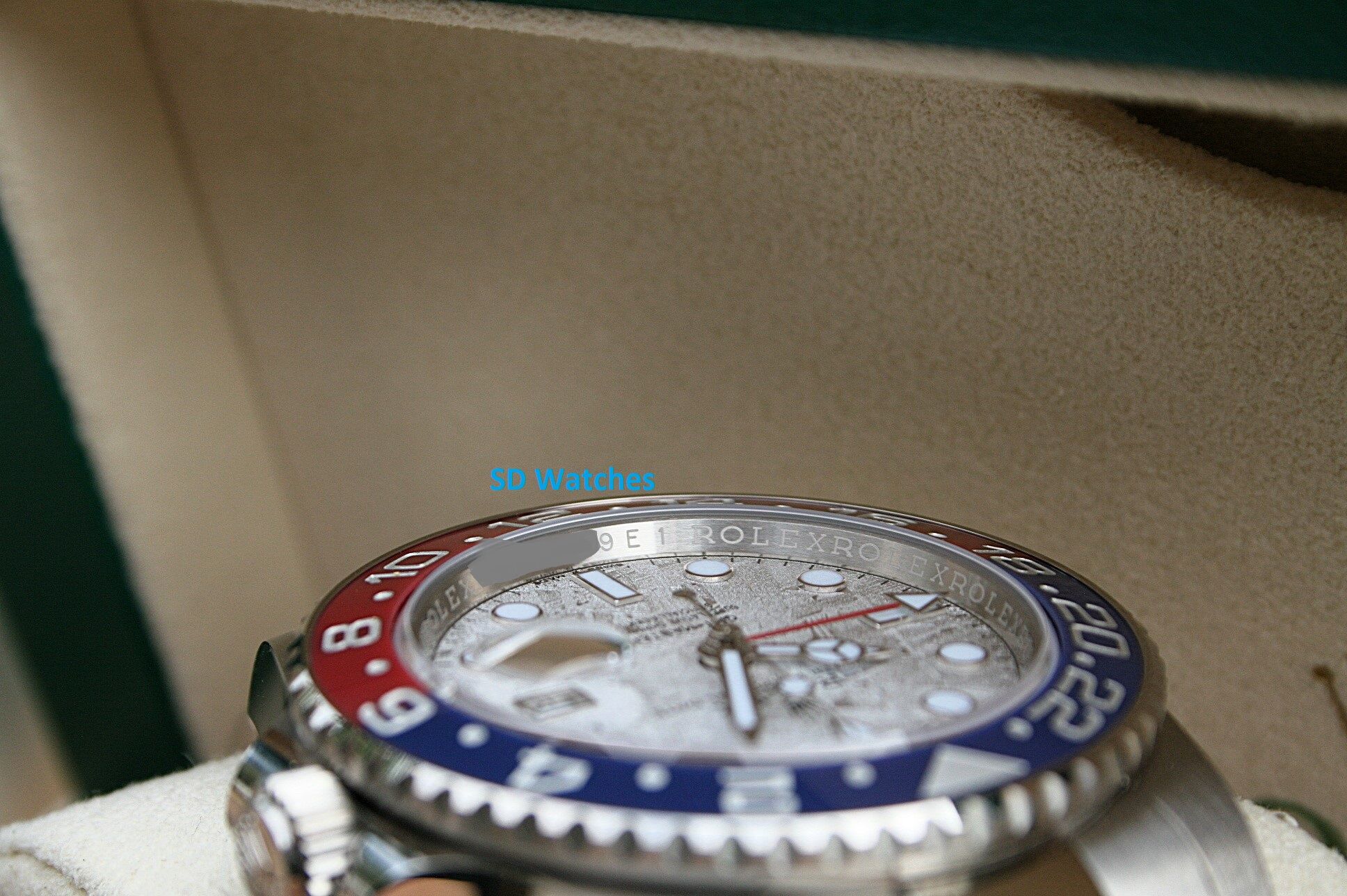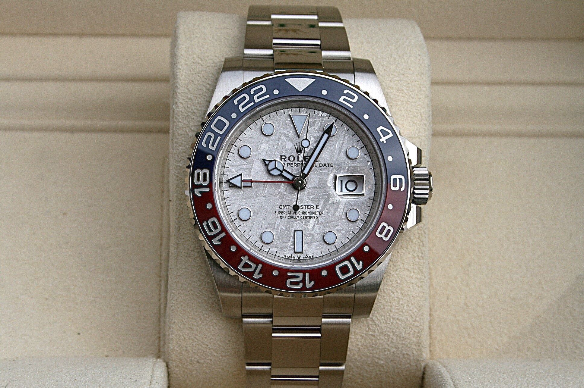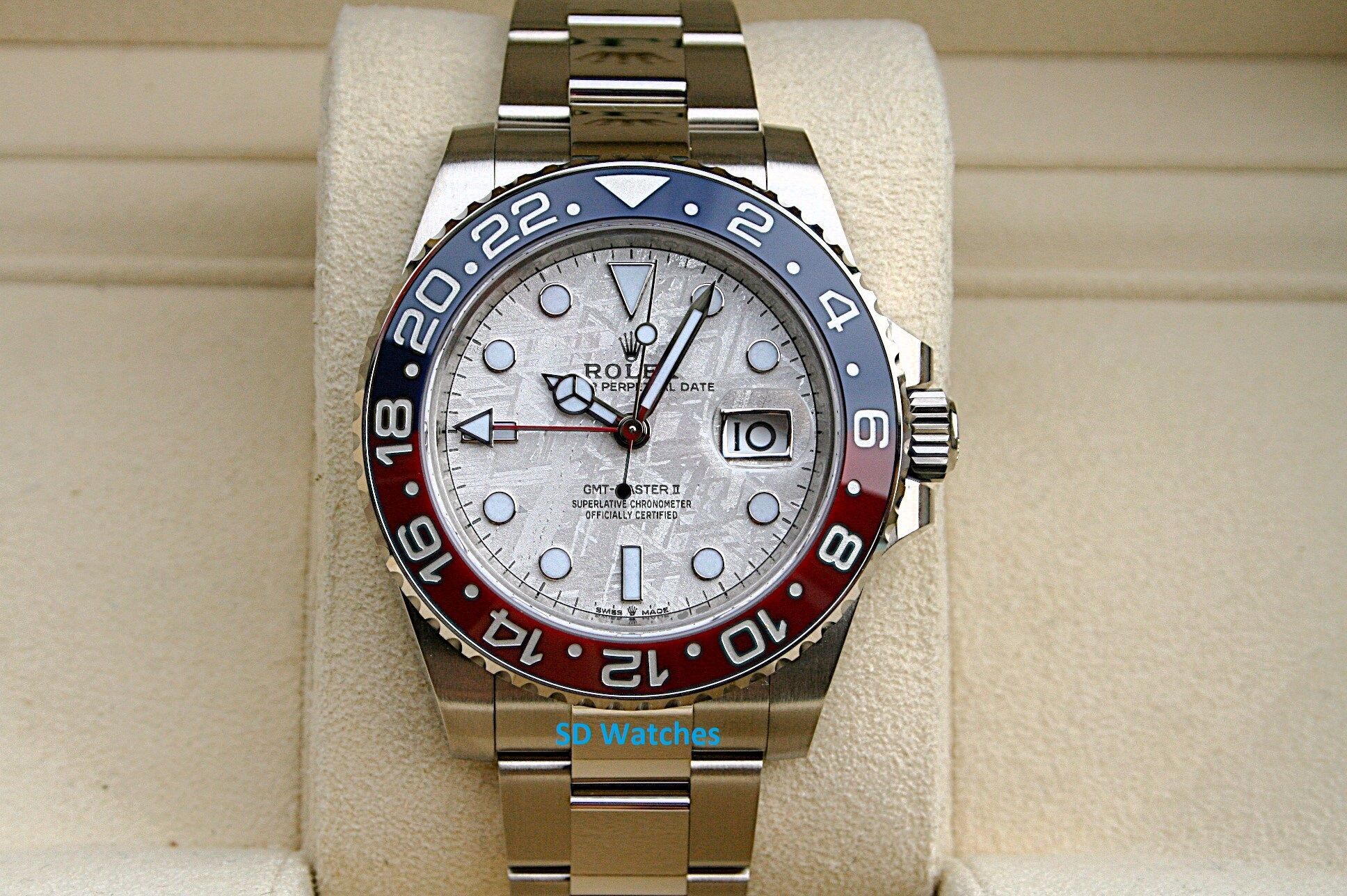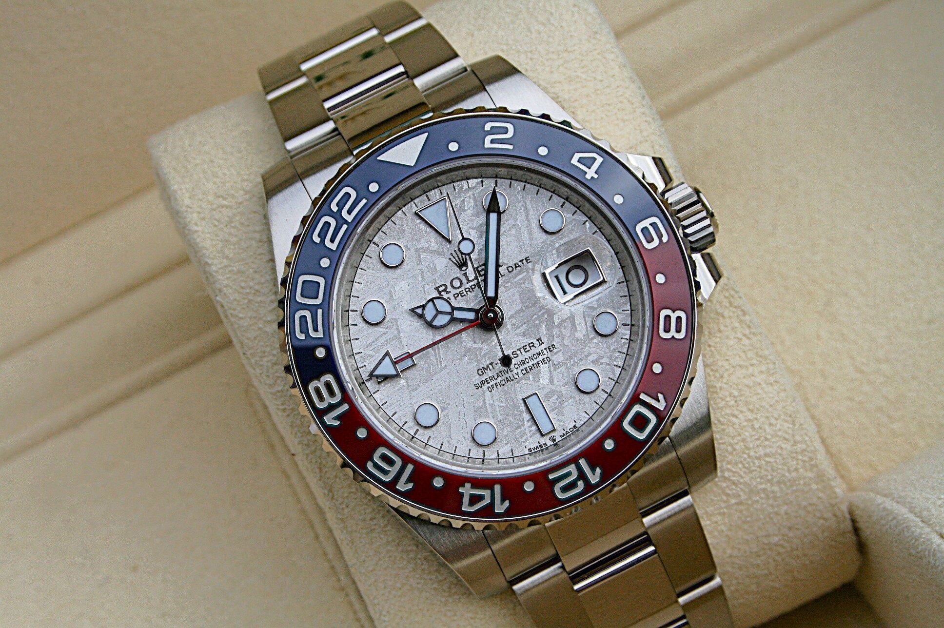 This watch comes in 18K white gold, Red and Blue Pepsi bezel with the stunning Meteorite dial.