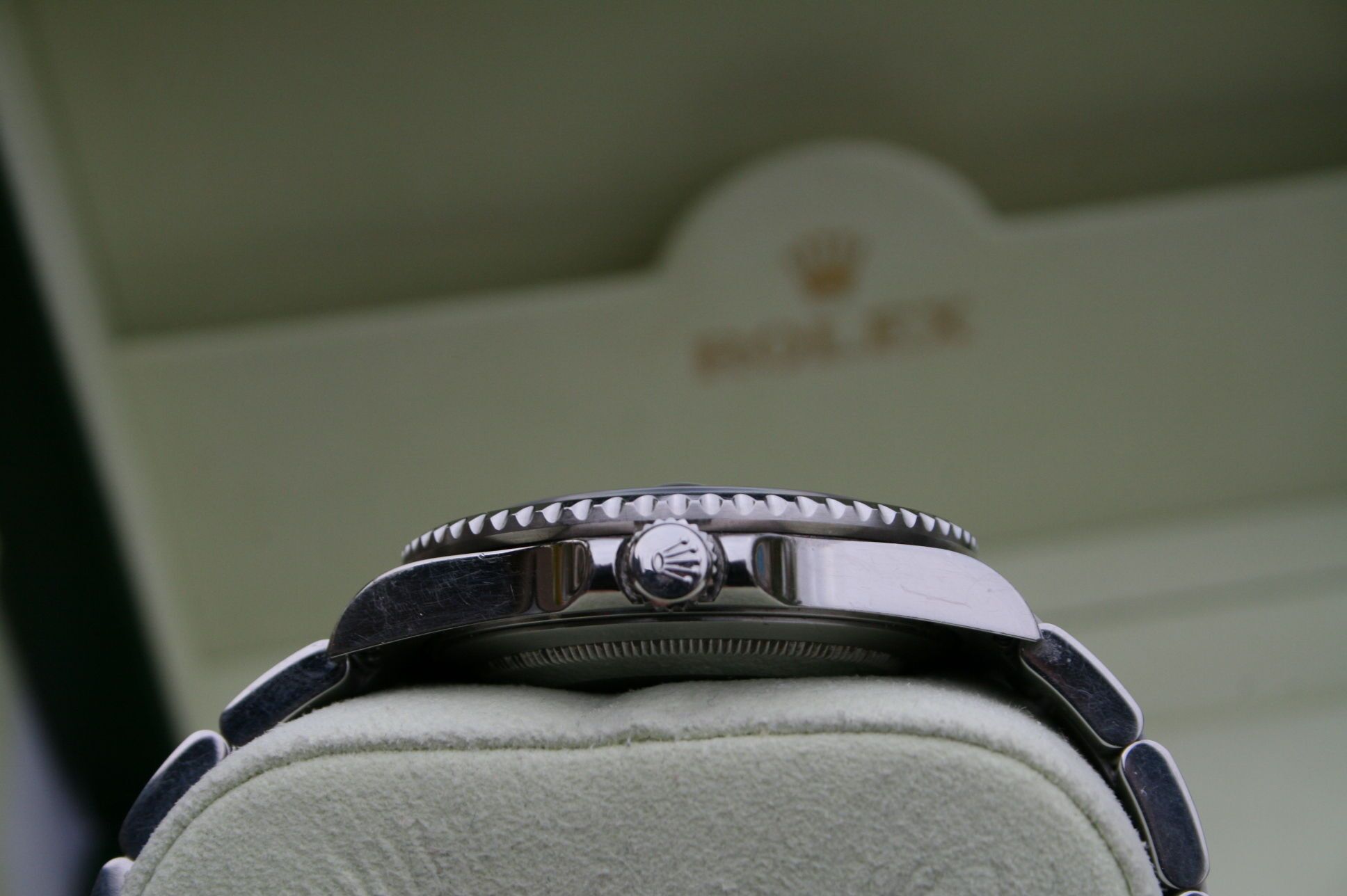 This Rolex is a F serial and it comes with the Black bezel and comes as seen in pictures with box and paper.