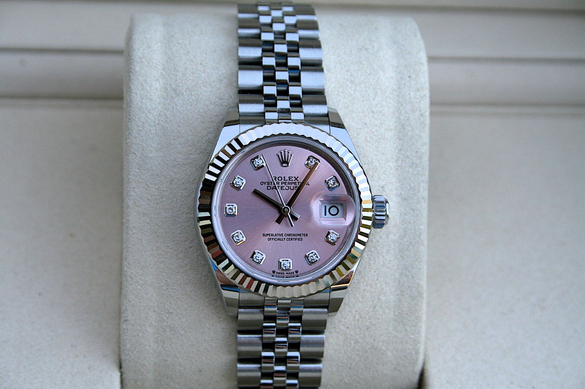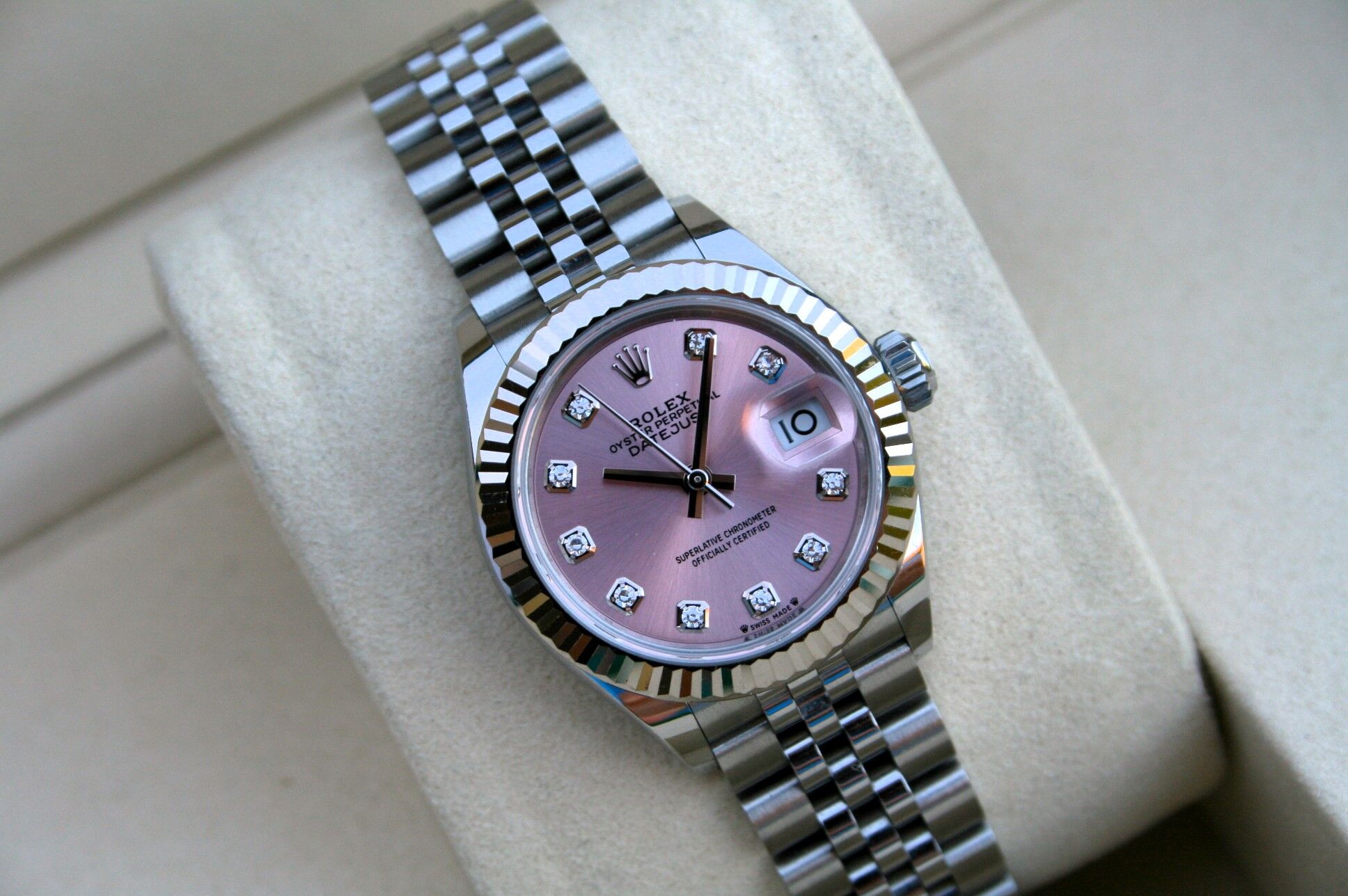 This watch comes in 28MM case with Jubilee band and 18k White gold Fluted bezel, it comes with one of the best dials on that model the Pink Diamond dial.